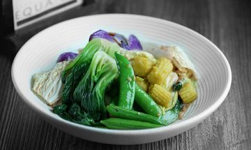 Wok tossed bok choy, baby corn, eggplant, snap peas, napa, garlic, sesame oil <mild>