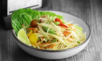 Green papaya, green bean, carrots, tomatoes, roasted peanuts in zippy lime dressing, with or without fish sauce (Choose your spicy level otherwise served mild)
