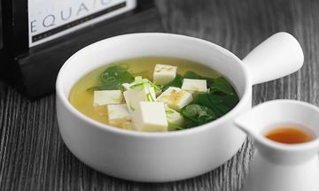 Fresh silken tofu, spinach and scallions in light and clear vegetable broth <mild>