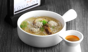 Glass noodles with minced pork, shitake mushrooms and scallions in light and clear broth <mild>