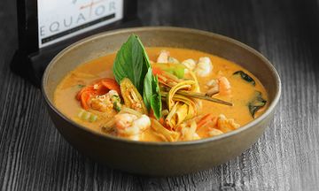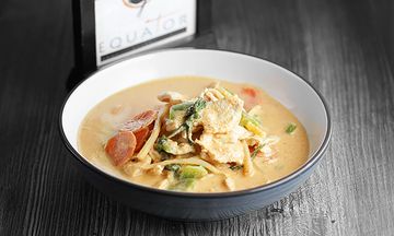Authentic street food version, more soupy, less creamy, bold and more flavor-intense herbs curry, basil, bell pepper, jalapeno, bamboo shoots and carrots <medium spicy>