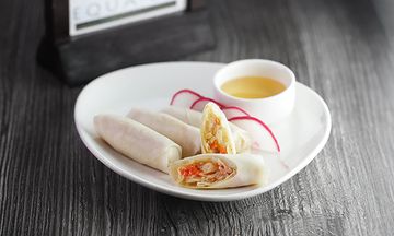 Lightly seasoned glass noodle and steamed veggies (cabbage, carrots) wrapped in soft rice paper served with Plum sauce