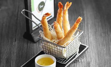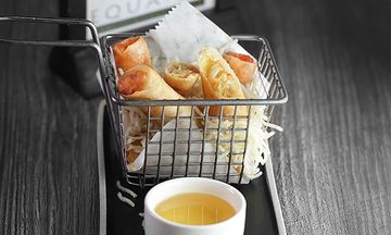 Fried large shrimp wrapped in rice paper, served with plum sauce