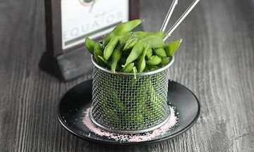 Steamed soybeans sprinkled with your choice of Himalayan salt or wasabi garlic seasoning