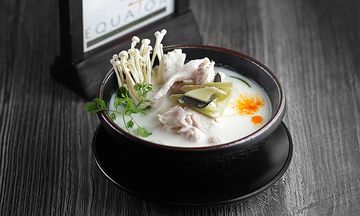 Chicken coconut soup with enoki mushrooms flavored with lemongrass, galangal and cilantro <mild>