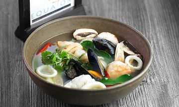 Combination seafood - shrimp, salmon, calamari, mushroom, basil, lemongrass in spicy & sour broth <medium spicy>