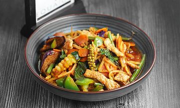 Sauteed basil, bell pepper, zucchini, carrots and bamboo shoots with your choice of protein <medium spicy>