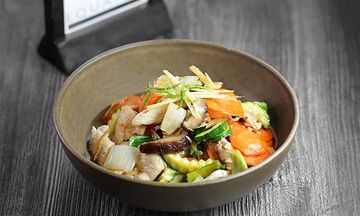 Sauteed chicken breast with onions, carrots, zucchinis and shitake mushrooms in ginger sauce <light spicy>
