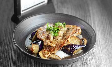 Marinated grilled pork served with sautéed eggplant, mushroom and onions <mild>