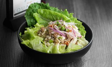 Spicy ground chicken, toasted rice, red onions, green onions, cilantro and mint leaf (depends on availability) served with fresh romaine <medium spicy>