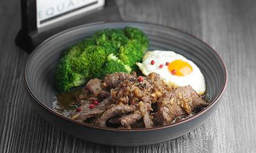 Sauteed slices of protein of your choice in garlic and black pepper sauce, served with steamed broccoli <light spicy>