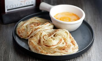 2 Swirly layered roti flatbreads, our made in-house buttery roti served with your choice of creamy coconut curry sauce < light spicy >